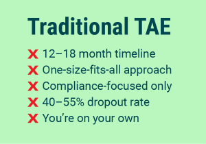 Our Optimised Duration is designed for efficiency. While the nominal hours are fixed, the TAE Plus model supports efficient completion. The timeframe depends on your delivery mode and existing knowledge.